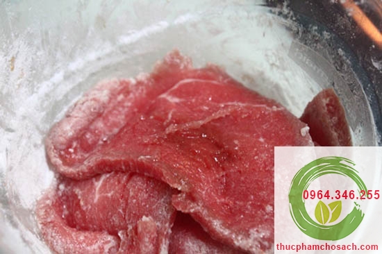 Bước 1: Thịt bò mua về rửa sạch, dùng khăn giấy lau khô, dùng dao thái thành từng lát mỏng vừa ăn.