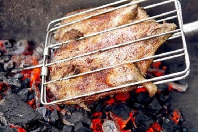 Sau 30 phút tẩm ướp, bạn cho vịt vào kẹp nướng rồi nướng trên than hoa trong khoảng 30 phút để vịt chín đều. Trong quá trình nướng, thi thoảng bạn phết gia vị ướp còn dư và một chút dầu ăn lên thân vịt để vịt không bị khô và cháy. Nướng vịt nhớ phải trở đều tay để vịt chín từ từ và có màu đẹp mắt.