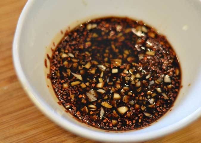 Bắc chảo lên bếp với chút dầu ăn, thi phơm hành băm, tỏi băm, sau đó cho nước tương, dầu mè, dầu ăn vào đảo đều rồi đun sôi. Hòa bột năng với chút nước lọc rồi đổ vào chảo, khuấy đều cho đến khi hỗn hợp sôi lên và có độ sánh vừa phải thì tắt bếp, đổ ra chén, cuối cùng thêm ớt vào là xong.