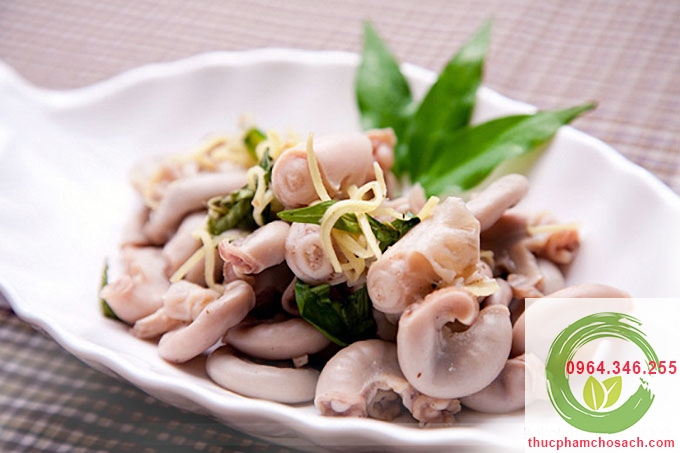 - Bóp tràng lợn với dấm và muối rồi rửa sạch với nước.