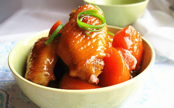 Đổ cánh gà vào nước sốt vừa nấu, cùng với cà chua, chúng ta cho thêm một chút nước lọc để đun. Cho lửa nhỏ để ta đun lâu cho cánh gà mềm, ngấm gia vị. Dùng đũa ta thử vị món ăn, nêm nếm cho vừa miệng. Nếu nhà có con nhỏ không ăn được cay thì cho ít ớt và tiêu để hợp khẩu vị gia đình.