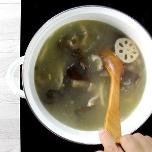 Bước 6 : Nấu lửa lớn cho nước sôi thì bạn vớt bọt, hạ nhỏ lửa hầm 1 tiếng để lấy nước dùng. Đổ phần bao tử vừa khìa vào nồi nước dùng cùng với củ sen và tiêu xanh. Nấu cho sôi rồi hạ lửa nhỏ hầm 40-45 phút, đến khi nào bạn thấy miếng bao tử mềm nhưng vẫn giữ được độ giòn sựt.