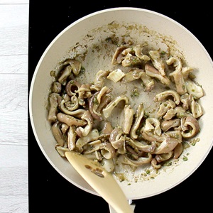 Bước 4 : Cho vào chảo 1 muỗng canh dầu ăn, đổ bao tử vào khìa đến khi cạn nước và bao tử có màu vàng đẹp mắt.