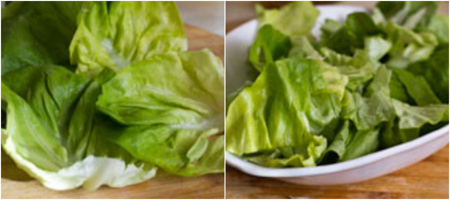 Xà lách rửa sạch, để khô rồi cắt miếng nhỏ.